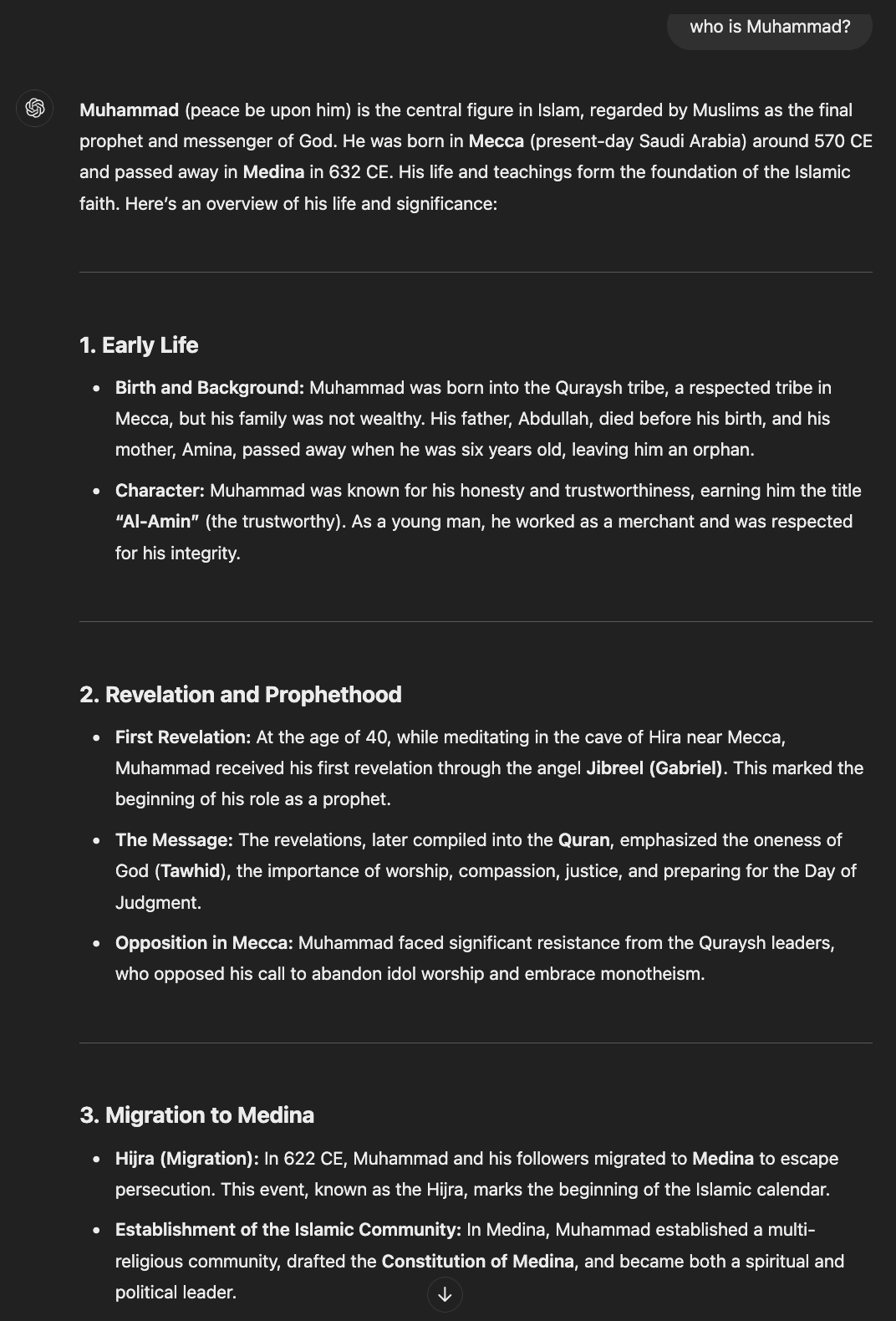 ChatGPT: "who is Muhammad?"